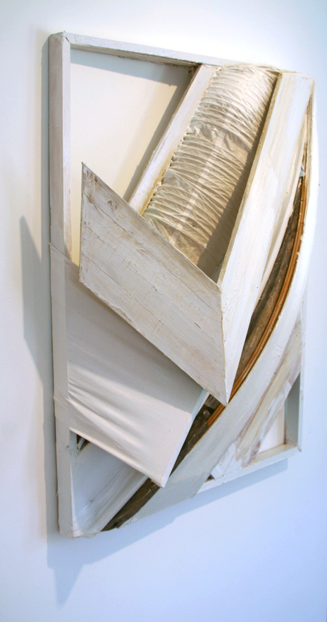 Found Wood, acrylic, latex, enamel,lamp shade, wallpaper