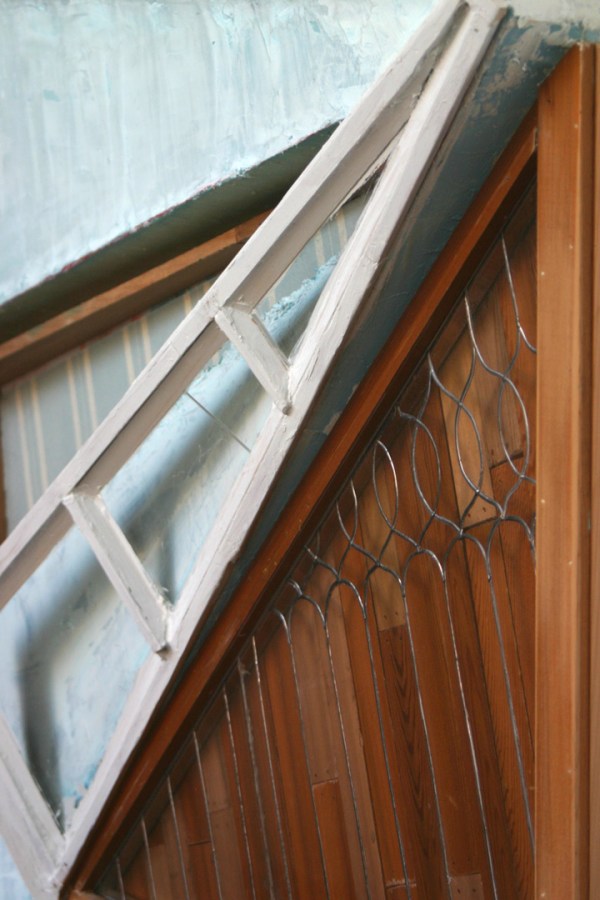 Found wood, fiberglass, glass, leading, acrylic, latex, graphite, wallpaper